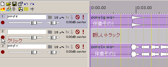 するとこんな画面になるはずなので、新しいトラックの録音準備ボタンを押す