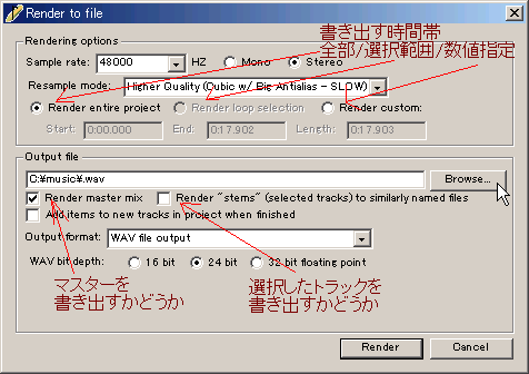 もっと詳しい情報やトラブル対策はローコスト制作のREAPERのページ、Dominoとの連携に関する細かい話は急がば回れの打ち込みとMIDIのページ、周辺環境も含めた荒っぽい説明はASIOとかDAWとかVSTとかで紹介している。