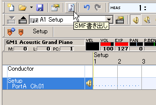 伴奏のSMF(標準MIDIファイル)を読み込んだトラックでI/Oボタンを押し、