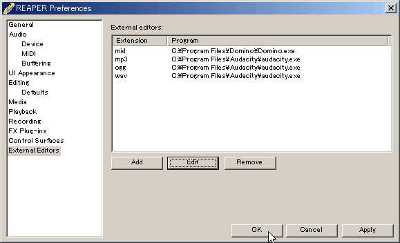 DominoやAudacityと併用する人は、外部エディタの設定もしておこう。