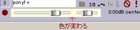 この状態で再生ボタンを押してからフェーダーを動かすと、その動きがオートメーションとして記録される。ただしこの機能は音量とPAN(とマスターの演奏速度)のみで、プラグインのオートメーションには(バージョン0.999では多分)フェーダーを使えない(外部ハードからの操作ができるかどうかは未確認)。