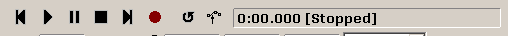 最初まで戻る、再生、一時停止、停止、録音、ループ再生オン/オフ、オートメーションモードの選択、現在位置と状態(停止中/再生中/録音中など)。